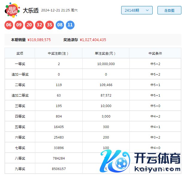 大乐透第24148期开奖。当期开奖号码为:前区06 09 20 32 35,后区08 11。当期前区号码大小比为3:2,奇偶比为2:3,三区比2:1:2;后区开出大大组合08 11。