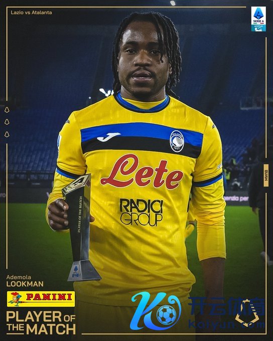 意甲官方晒出卢克曼领奖的像片,晓谕他当选本场比赛全场最好球员。
